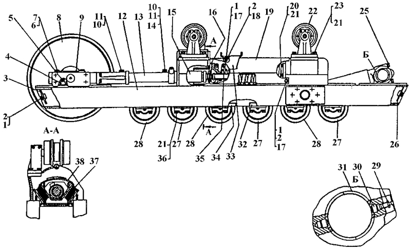0 50-21-401СП Тележка шестикатковая, приспособленная под установку балки, левая